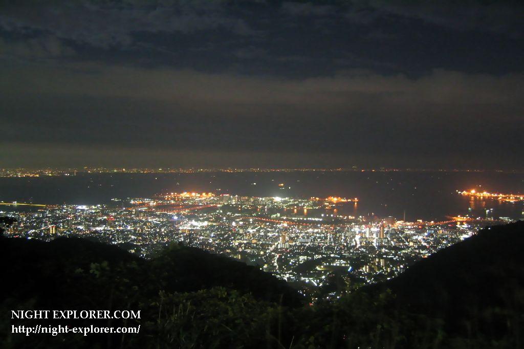 六甲山に挟まれ、こぢんまりとした夜景を臨めます。
