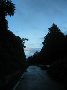 | 日が暮れたがひた走る 桜山林道起点、日没後のため調査はしなかったが、 2.4kmピストンのよう簡易舗装 |